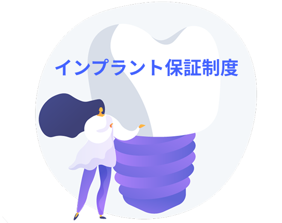 インプラント体の脱落や破折、上部構造の破損等を原因として再治療が必要になった場合、その治療の完了後に、医院に対し、予め決められた保証額を限度にその費用が給付、補填される制度です。
