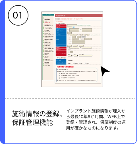 インプラント保証制度をご利用いただくためのWEBシステムの概要